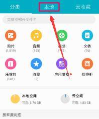 2、在“文件管理”界面中,点击“本地”,进入本地存储的页面。