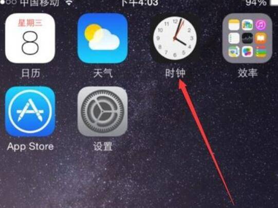 点击手机上的时钟选项;