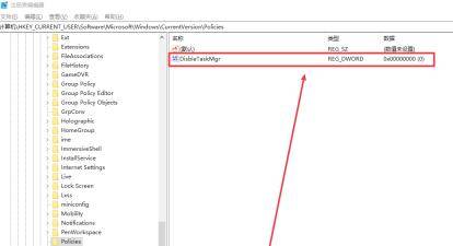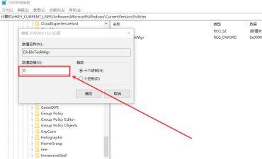 6、进入参数设置,禁用是因为此处值为1,将其改为0即可打开任务管理器。