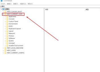 2、进入注册表选择“HKEY_CURRENT_USER”。