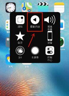 7、回到主界面,点击小白点就能够找到重新启动的功能了。