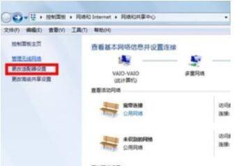 在电脑中选择打开网络和共享中心并选择更改适配器设置;