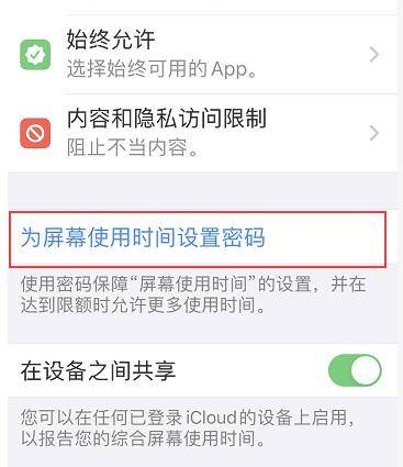 2、点击为屏幕使用时间设置密码;