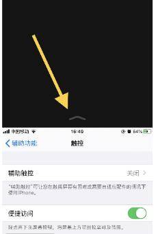 5、开启便捷访问,轻点2次屏幕下方任务栏;点击黑色区域的箭头,即可恢复手机屏幕。