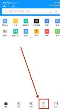 3、进入QQ浏览器的程序主页面后,点击屏幕底部工具栏中的文件功能。