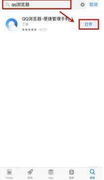 2、进入App Store(即应用商店)的程序主页面,搜索QQ浏览器进行下载并打开。