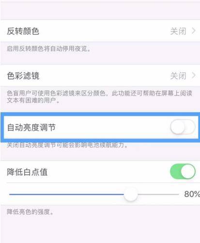 最后点击关闭自动亮度调节开关即可。