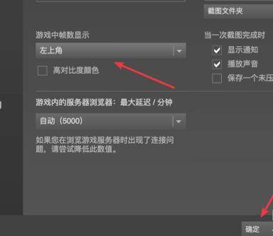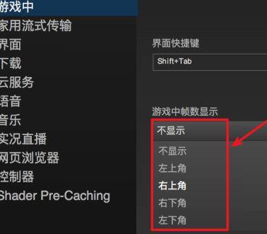 点击打开下拉选项,可以看到可以选择帧数显示在游戏中的哪个位置;