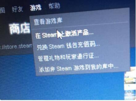 2、在打开的steam应用程序界面中,点击上方的游戏,然后点击在steam上激活产品。