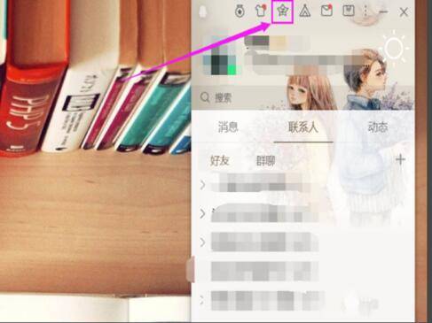 在QQ主界面中,点击最上方的五角星QQ空间符号;