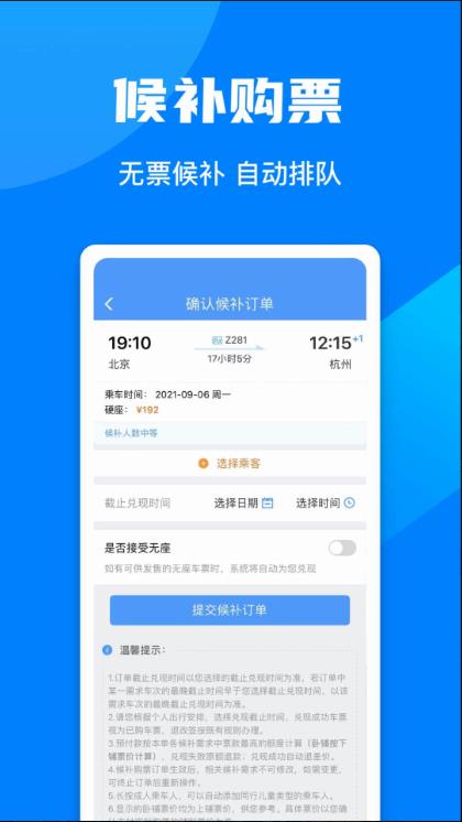 2、用户的信息要保证是真实有效的,不然即使是买到票了也无法乘坐;