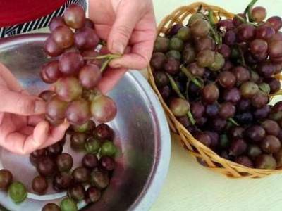 1、取一个盆子,把葡萄粒摘下来,放入盆中。