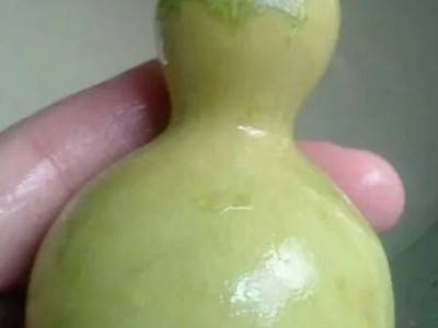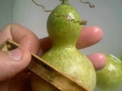 3、用铁刨花轻轻打磨一下葫芦外皮,把没有打到地方的外皮擦下去,用碱水沾一下葫芦外表面。