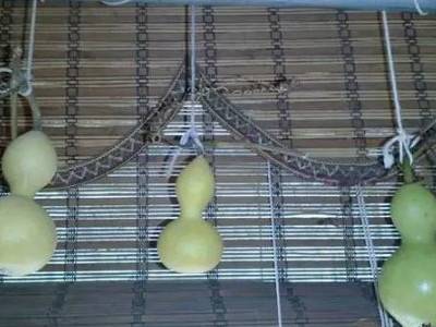 4、把处理好的葫芦挂在阴凉处,不要着地。干透后在太阳下晾晒数日,看葫芦皮色变化决定晾晒时间。