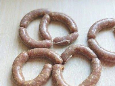 8、灌好的肉肠,轻轻的扭扭,分段。