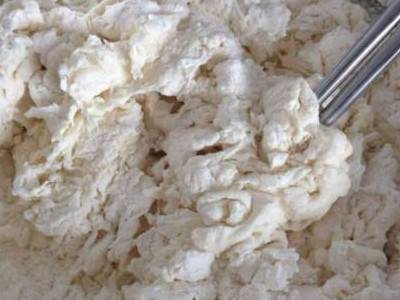 2、将搅拌好的面粉加入适量的凉水,用筷子搅成絮状,加水过程要少量多次,这样面粉然才能吸水均匀,然后用手揉成面团,盖上盖子醒半个小时。