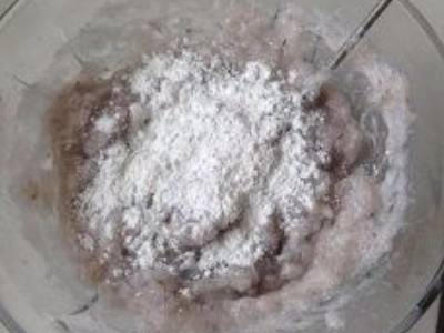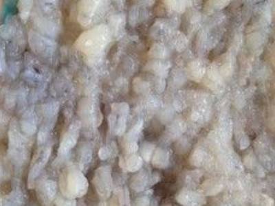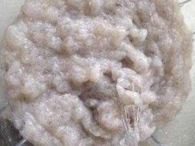 2、青虾用刀背剁成虾肉糜、如果喜欢Q一点的不要剁太碎。