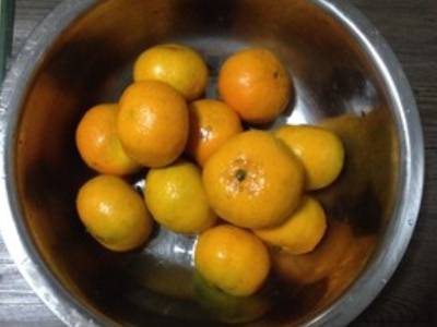1、挑选成熟的桔子,用盐水浸泡,再用清水清洗干净。