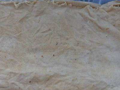 5、把泡好的绿豆均匀铺在篮子底部的布上,然后用一块浸湿拧干的棉布搭在篮子上方;