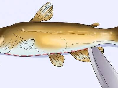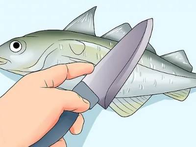 2、用一把锋利的刀从肛门处插入,沿着鱼腹往鱼头切开,一直切到鱼鳍下方为止。