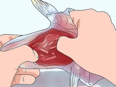 4、用力抓住尾部的鱼鳍,将其从鱼尾到鱼头顺势撕掉。