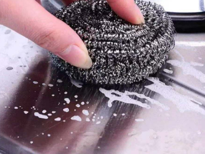 2、关火,用清洁球小心地擦拭,再用洗洁精和清水洗干净即可。