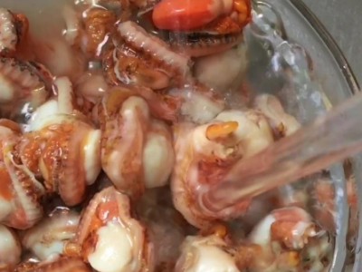 1、将海鲜分别清洗干净,用食盐泡五分钟。