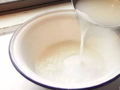 2、把肉放入淘米水里,泡大约5-10分钟左右。