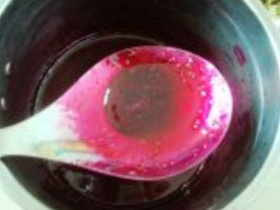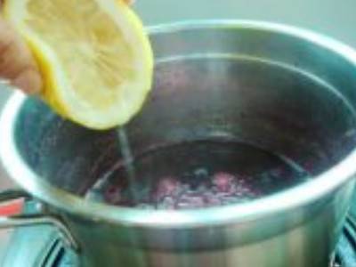 5、苋菜汁熬剩三分之一时,放入白糖,挤入一个柠檬汁继续熬。