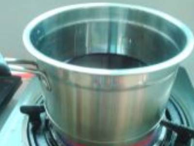 4、把苋菜汁放入小锅里煮沸后改小火慢慢熬。