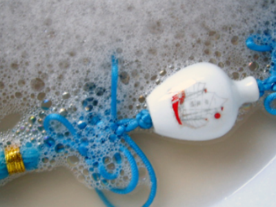 2、把旧中国结泡在水里1-2分钟,用手将其搓洗干净。