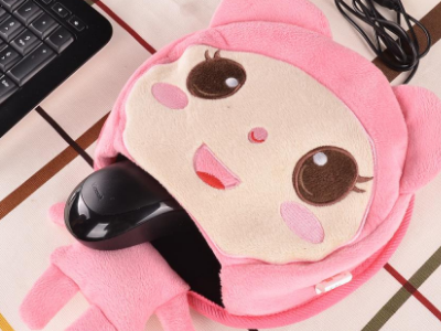 3、鼠标塞进去后把拉链拉上,把USB接入电脑的插口上,等待发热片加热即可将手伸进去。