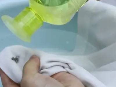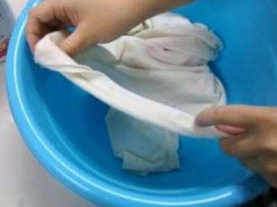 1、将衣物放入盆中,污渍部位贴盆底。