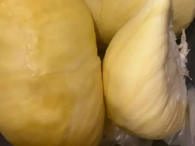 4、将硬的榴莲肉放进微波炉里面转:将硬的榴莲肉用保鲜膜包起来,然后用微波炉煮熟,但口感不如熟榴莲那样好。