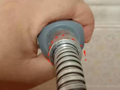 1、逆时针方向旋转淋浴软管的接头处,将花洒从淋浴软管上取下来。