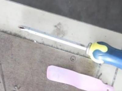 3、垫着橡胶垫,使用十字螺丝刀拧下滑丝的内六角螺丝即可。