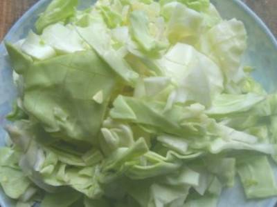 2、把这一半包菜弄散,放在水龙头下冲洗干净。