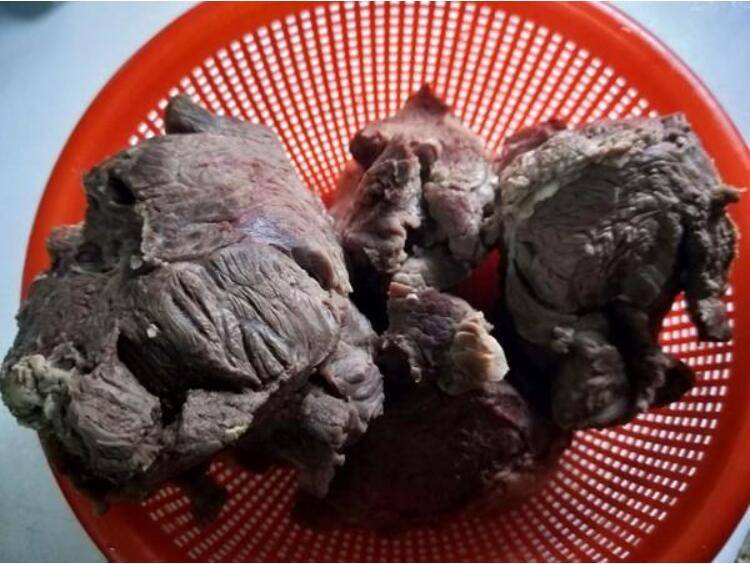 1、生牛肉洗净,放在开水中焯一下。沥干水分。