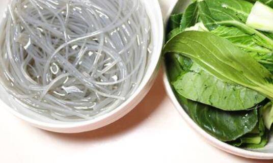1、粉丝提前泡软,青菜去根后清洗干净备用。