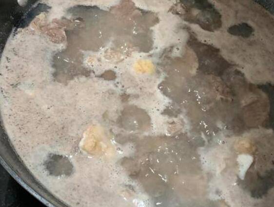 1、买回来的牛骨多清洗几遍,清水下锅烧开焯水10分钟,焯的过程中,可以看到很多血水变成浮沫漂起,这血水可是清水浸泡不出来的。把牛骨焯完后,再用清水多洗几遍沥干水分。