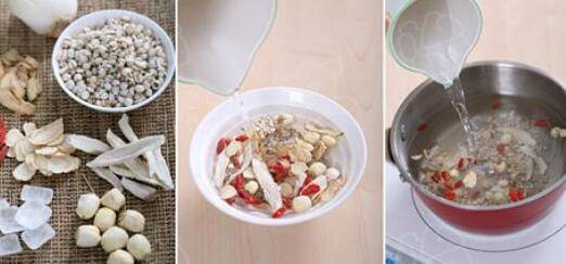 配料:牛骨、莲子、百合、薏米、食盐、枸杞。做法: