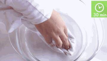 二、并放入水中浸泡几分钟后搓一搓。