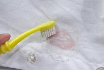 四、用牙刷轻轻刷一刷沾有黑色墨水的地方。