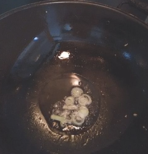 锅中放入食用油,将鸡蛋打散,放入锅中。