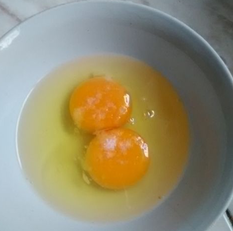 将鸡蛋打入碗中,先加入少许盐,这样鸡蛋就入味了。