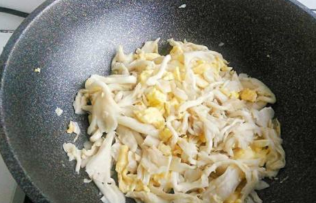 炒好后倒入黄蘑继续翻炒几下;