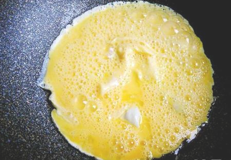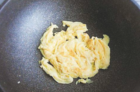 锅里放入适量的食用油,油热后倒入蛋液炒熟;