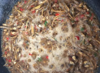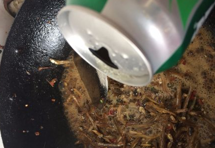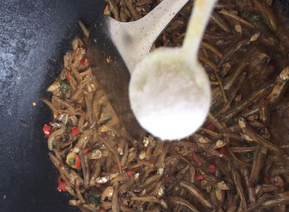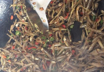 然后放小鱼仔下去炒;