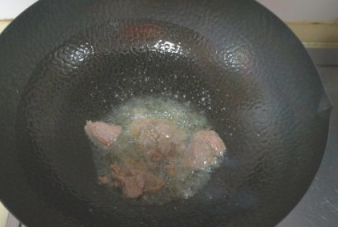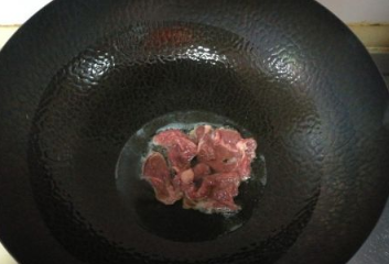 炒锅中放入适量调和油,油热后将牛肉放入锅中;