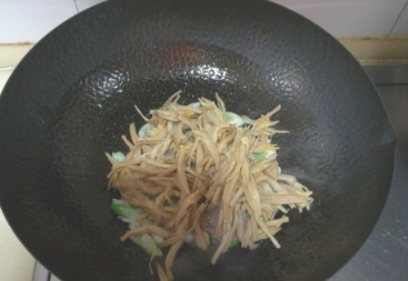 翻炒几下,让黄花菜和其它食材混合均匀;